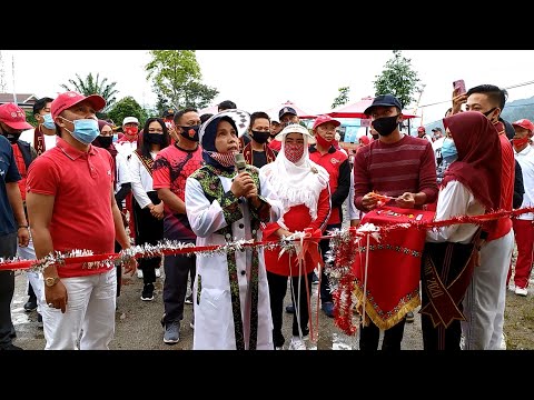 Ketua TP PKK Lambar Partinia Parosil Mabsus meresmikan Warung Pedagang Mandiri (PM) dihalaman Gedung Sanggar Setiwang depan Kebun Raya Liwa. Peresmian ditandai dengan pemotongan pita. Minggu, 16 Agustus 2020.