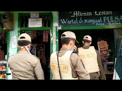 Tim Reaksi Cepat (TRC) Satuan Polisi Pamong Praja Kabupaten Lampung Barat (Satpol-pp Lambar) melakukan himbauan dan operasi penegakan disiplin protokol kesehatan di sekitar pertokoan Pasar Kamis Pekon Sukananti Kecamatan Way Tenong, Kamis, 13 Agustus 2020.